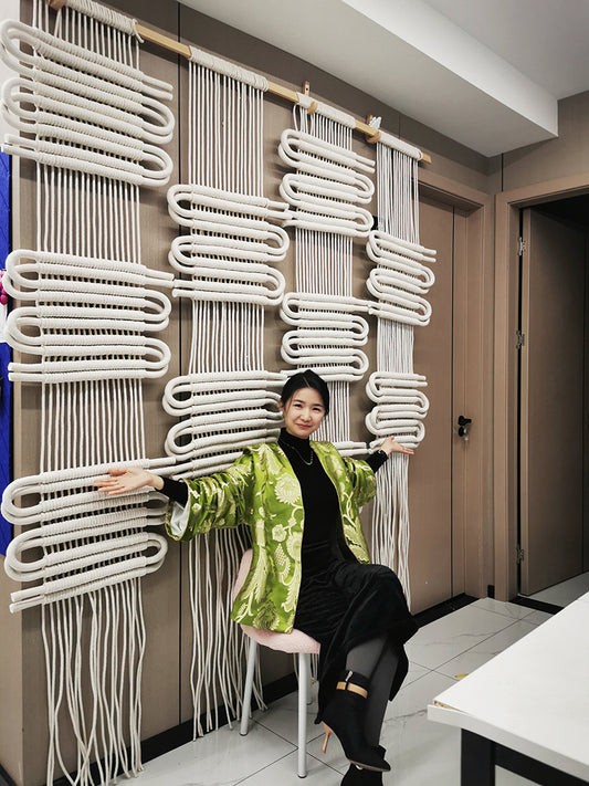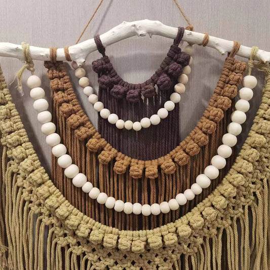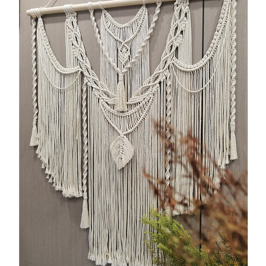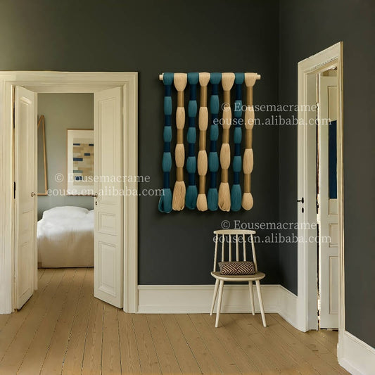 Chic Bohemian Hand-Woven Knotted Art Wall Hanging for Hotel Living Room Bedroom Decoration