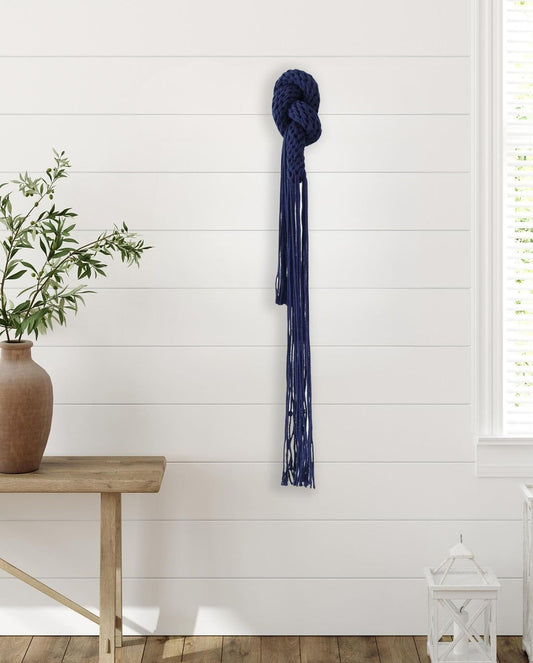 Dark Blue Macrame Wall Hanging Knot Shape Custom Luxury Wall Art Home Decoration Living Room Bedroom Hotel Tapestry