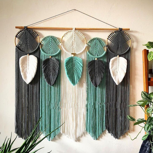 Wall decorations for home decor nordic style boho colored leaf feather wall hanging